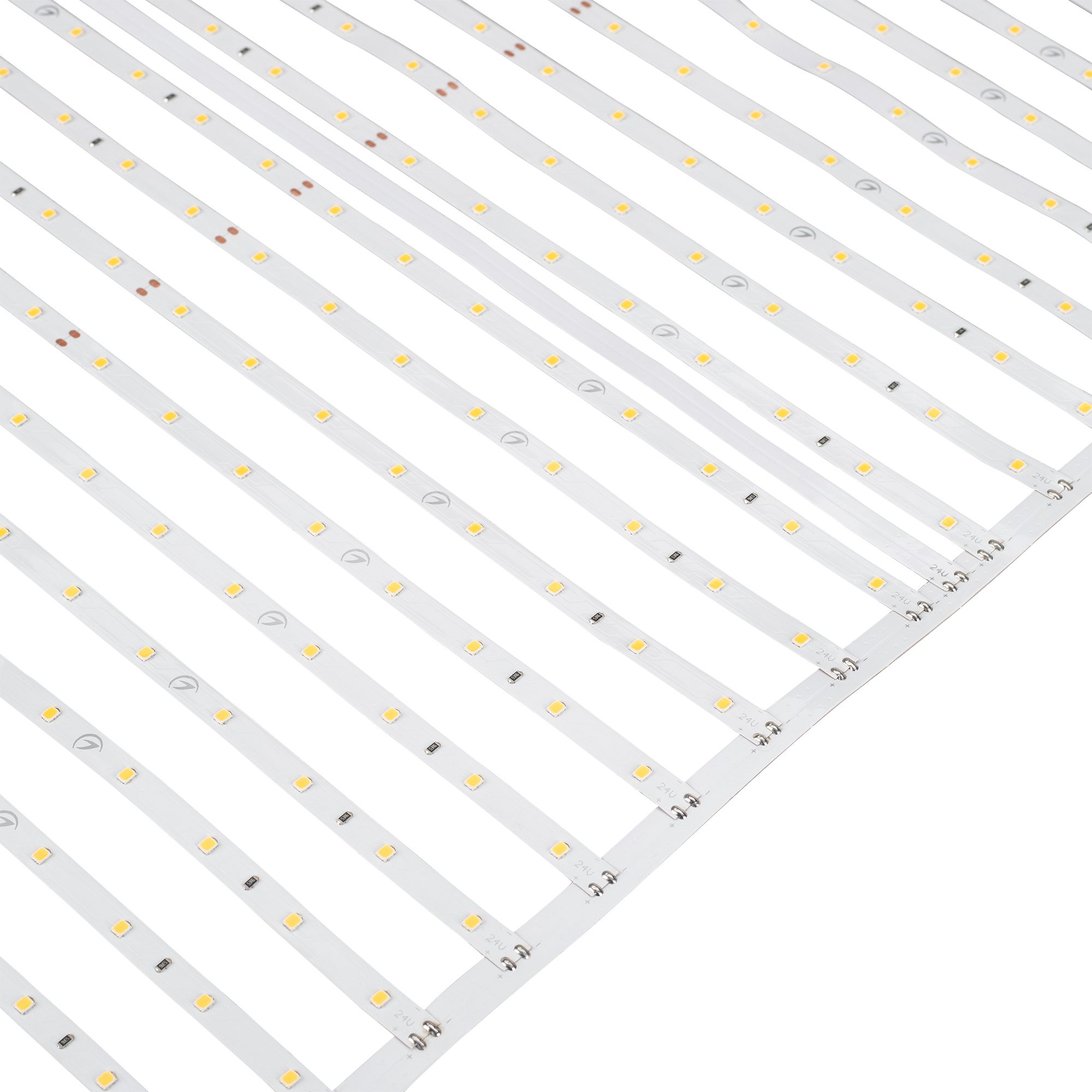 Светодиодная лента-сеть из шести сегментов по 20 линий, соединенных между собой платой-проводником длиной 500 мм, расстояние между центрами соседних линий 25мм, общая длина сети 3000 мм, светодиоды smd 2835, 640 шт/м (1920шт на 3м), белая плата 8мм, скотч 3М. Цвет ТЕПЛЫЙ 2600-2700K Напряжение питания 24В, мощность 43,6 Вт/м (130,8 Вт на 3м), угол 120° CRI>85 Световая эффективность 150 лм/Вт. Шаг резки 500 мм. Размеры сегмента 500х410х1,2 мм. (320 светодиодов) Размер ленты-сети 3000х410х1,2 мм. Дополнительный теплоотвод не обязателен. Кратность заказа поставщику: 3 м.