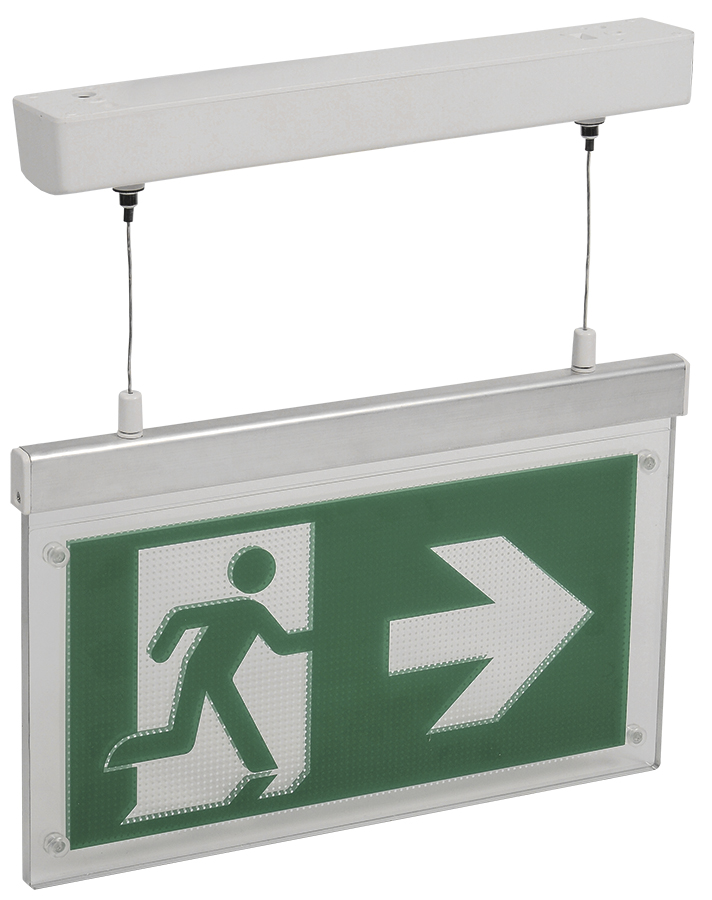 Предназначен для указания путей эвакуации, мест выхода, направления движения и прочих информационных целей в общественных и административных помещениях с низким уровнем содержания пыли и влаги. Знаки сменные. Монтаж - подвесной на тросах, накладной на стену.
