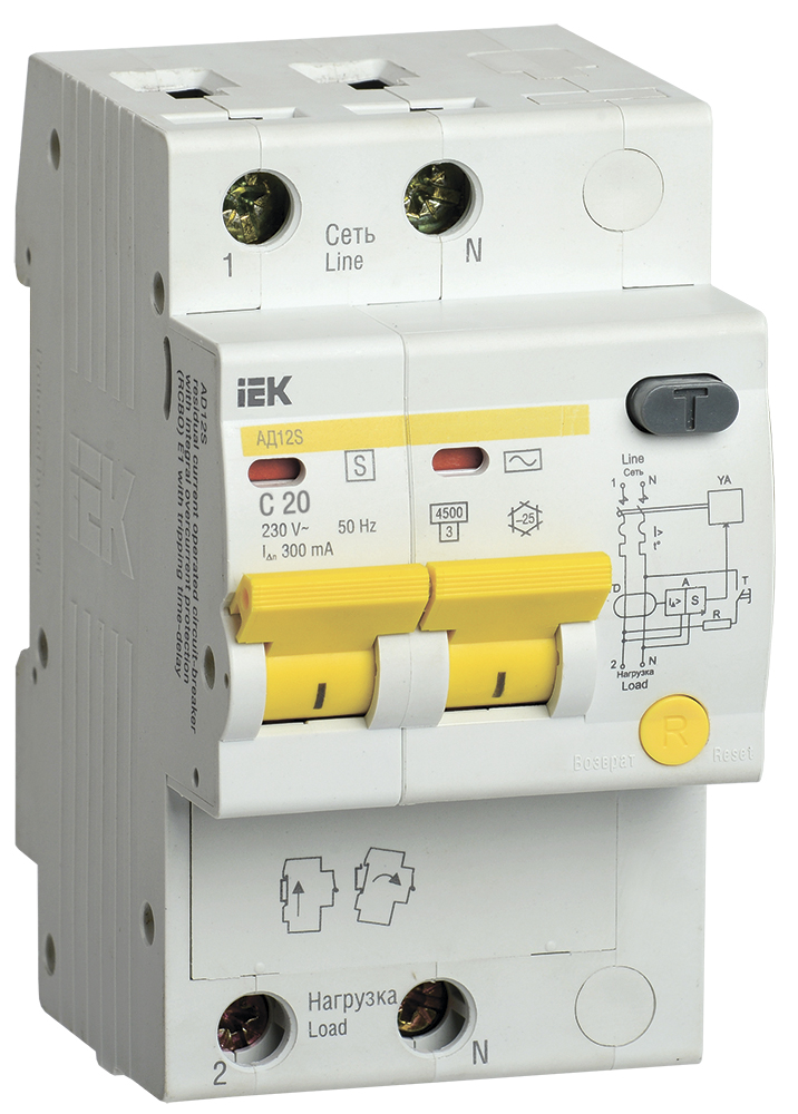 —IEK Выключатель автоматический дифференциальный АД12S 2Р 20А 300мА