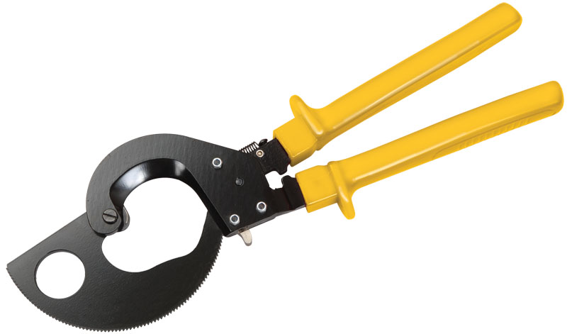 Инструмент для резки кабеля с пластмассовой и бумажной изоляцией изготавливается из инструментальной стали с высокой режущей способностью. Специальная геометрия лезвий позволят осуществлять работу безопасно и быстро. Обладает высокой стабильностью и незначительной массой. Ножницы секторные снабжены храповым механизмом, выдвижными ручками, блокиратором резки. Замок устроен таким образом, что позволяет осуществлять обратный ход лезвия, необходимый в случае попадания в нож посторонних объектов. Чрезвычайно высокая режущая способность инструмента достигается за счёт оптимальной конструкции ножниц и режущих ножей специальной геометрии.