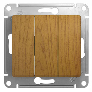 - Трёхклавишный выключатель позволяет управлять тремя источниками света из одной точки.