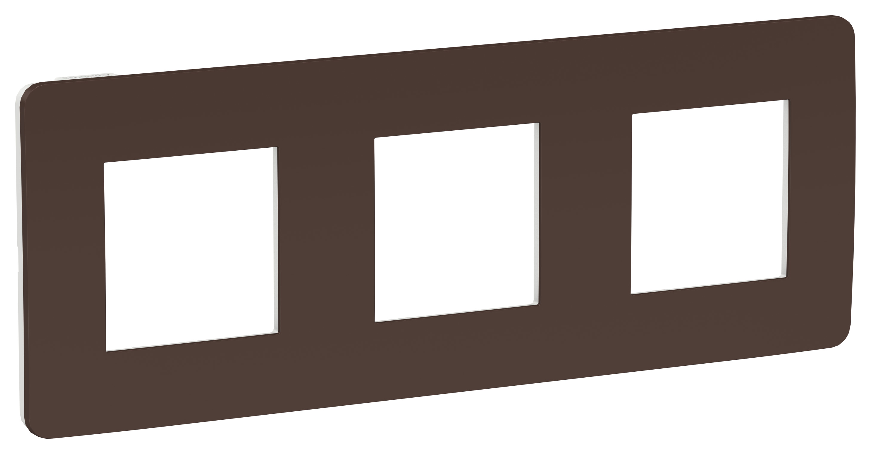 Рамка Schneider Electric UNICA STUDIO Color (шоколад) трёхместная с задней панелью цвета белый.